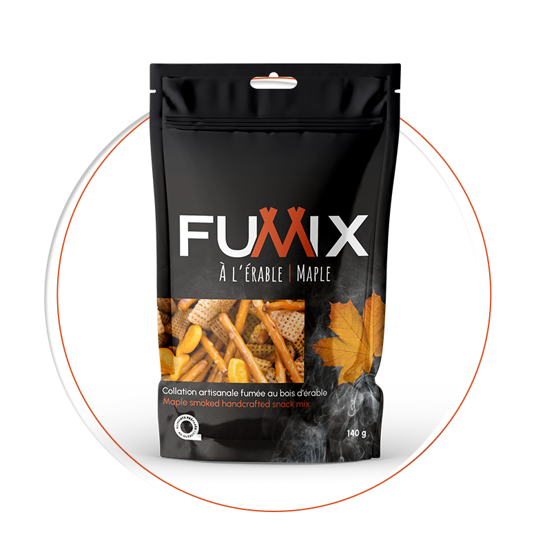 FUMIX, c’est notre histoire… deux mordus de bon goût, Jonas et Marshall. Nous nous sommes rencontrés en 2010 alors que nous travaillions pour le Cirque du Soleil. De l’amitié à la passion pour les produits fumés, notre complicité s’est embrasée au fil des années. En 2020, l’idée folle de lancer nos propres créations est née! Nos produits sont fumés lentement, à basse température, avec du bois 100 % québécois. Chaque bouchée est une explosion de saveurs. Fais attention, tu pourrais ne plus être capable de t’arrêter!